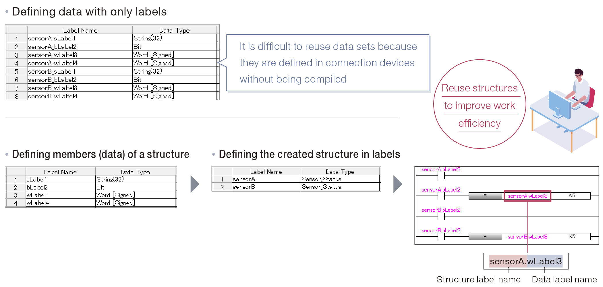 Reduce programming effort with labels and structures