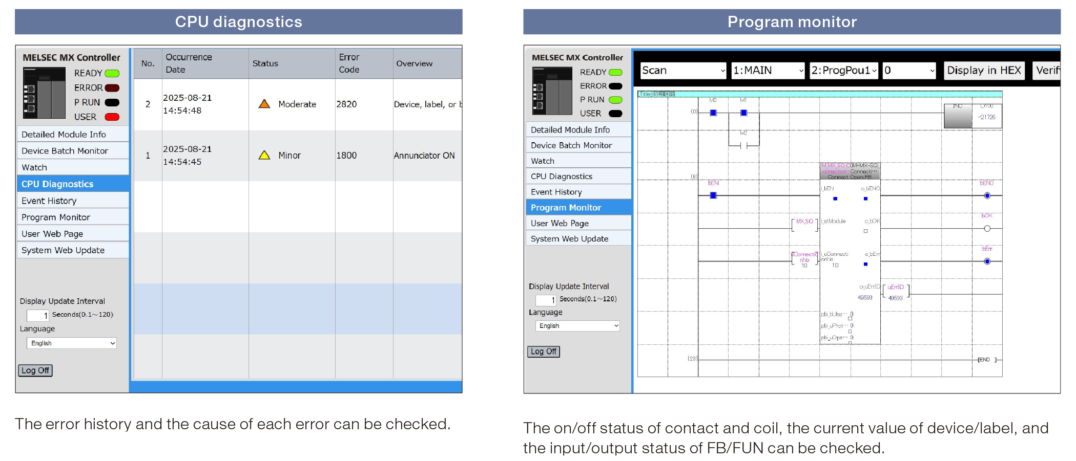 View error details, program operating status, and device status in your browser for a quick initial assessment when a problem occurs.
