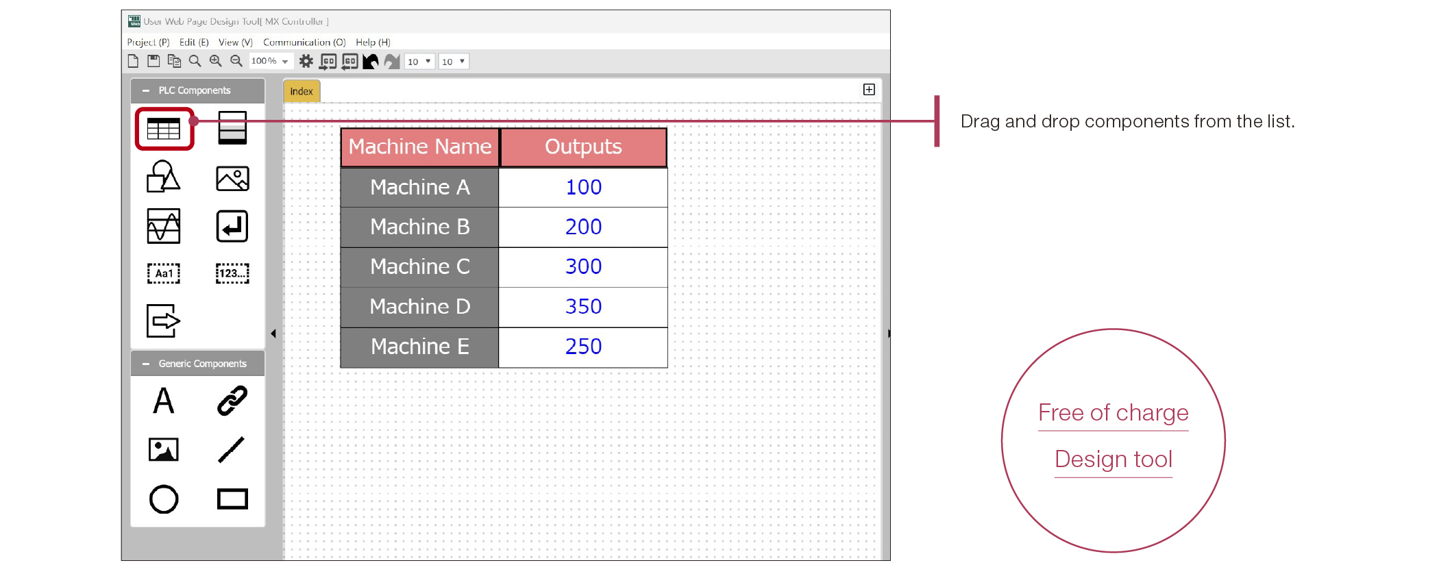 You can create original web pages for monitoring equipment status using numeric values, graphs, and images.
