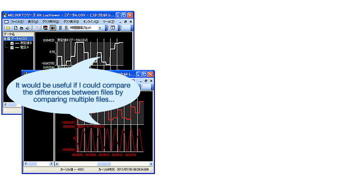 Logging data stored in multiple files can be displayed within the same graph area to verify the differences between the respective data with the same time intervals.