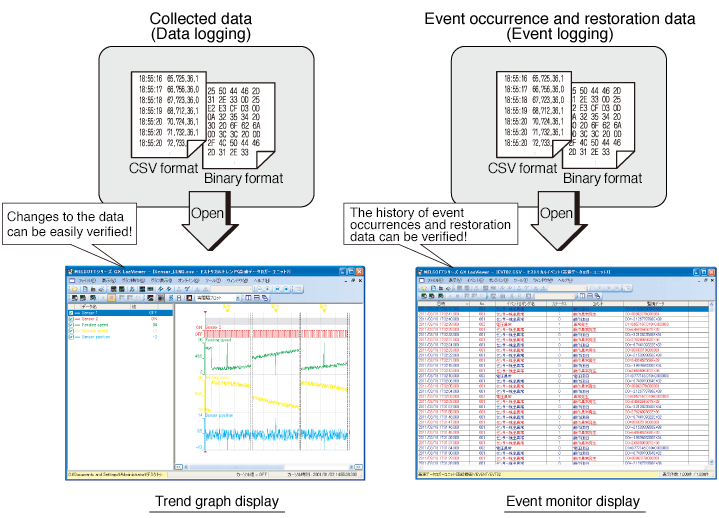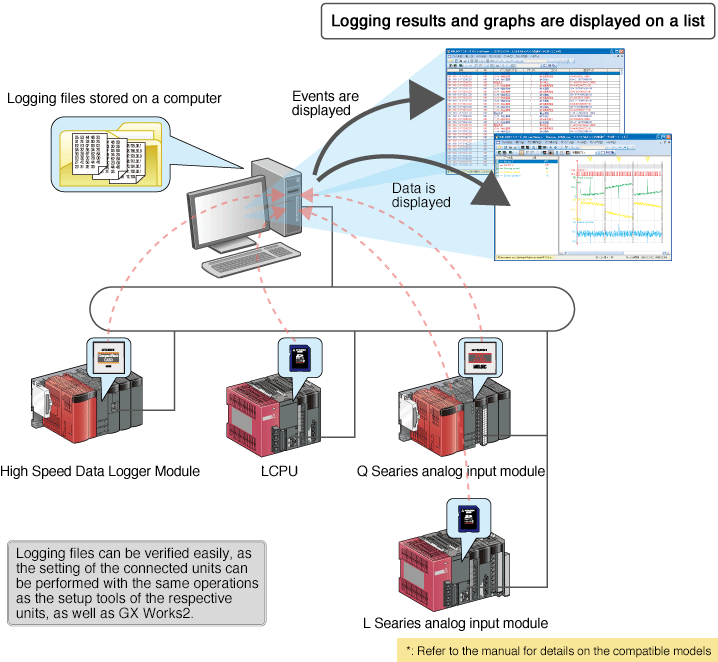 GX LogViewer is an easy to operate tool, which displays and analyzes a large amount of data collected by units that have the logging function of the Q Series or L Series of products.