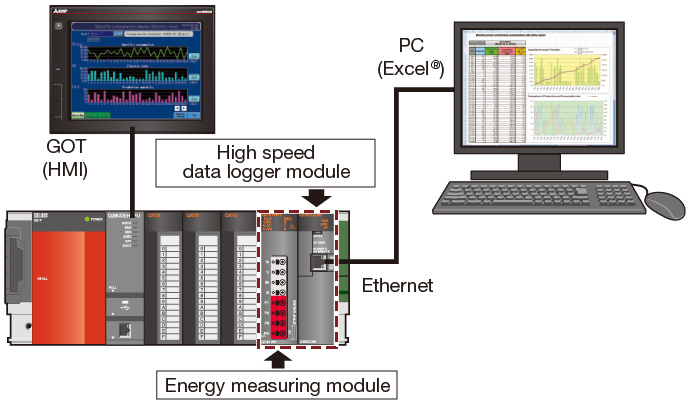 - Combination with the “high-speed data logger module (QD81DL96)” allows specific energy consumption analysis to be easily performed with a personal computer.