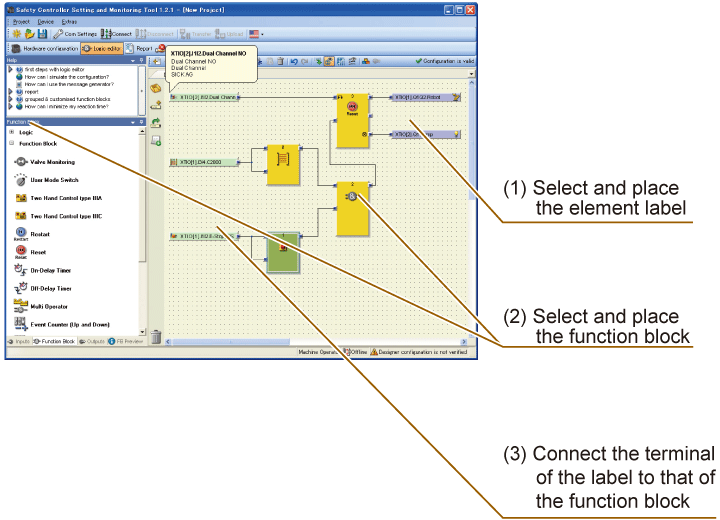 Elements connected to the I/O terminal are automatically labeled, enabling logic creation easier using labels and function blocks.