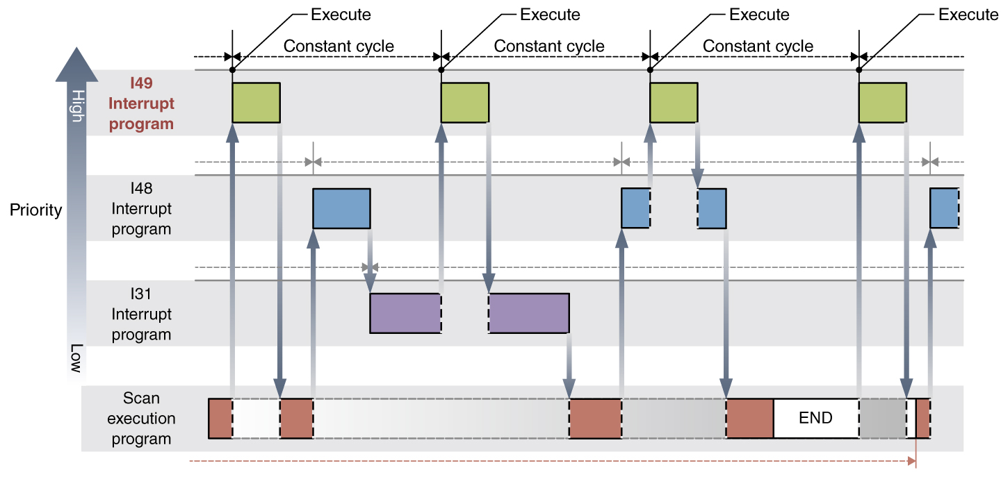 - Execute interrupt programs at a constant cycle (50 µs of minimum interval time) different from the scan time