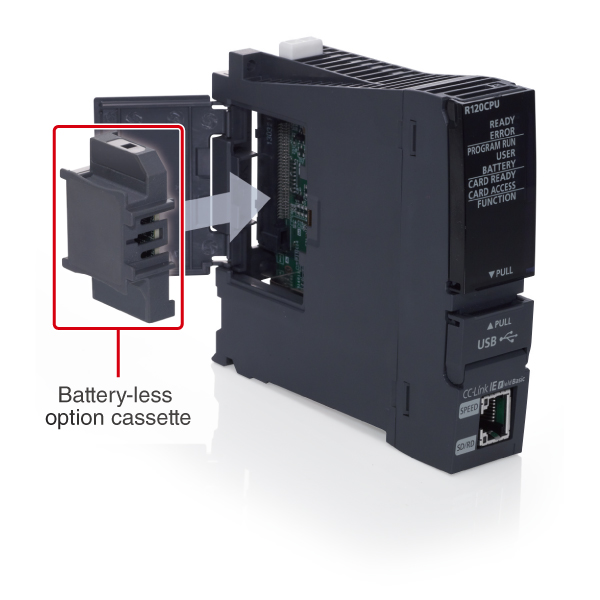 - Other programmable controller CPU modules can also store latch data without a battery by installing a battery-less option cassette