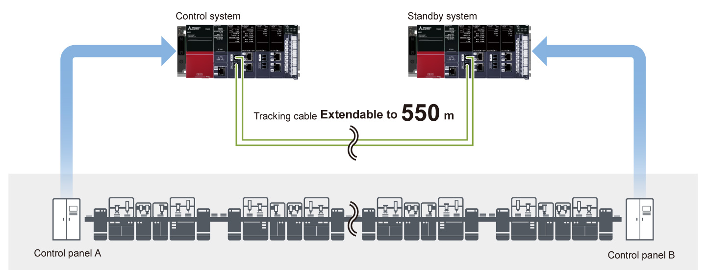 - Optical-fiber tracking cables enable the standby system to be installed in a remote location up to 550 m from the control (primary) system