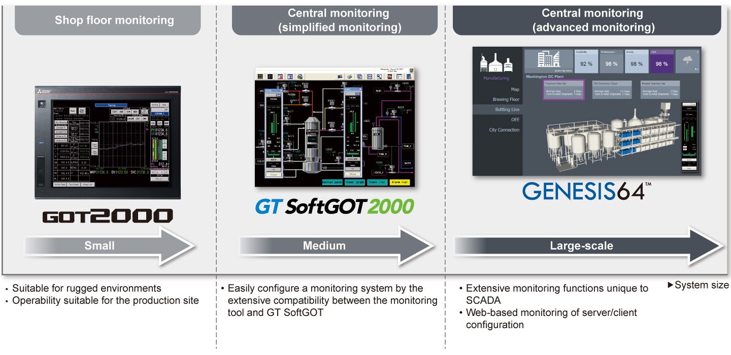 - Screen creation is easier in an efficient engineering environment realized by the extensive compatibility between the engineering software GX Works3 together with SCADA software GENESIS64™, GT SoftGOT2000, and GOT2000
