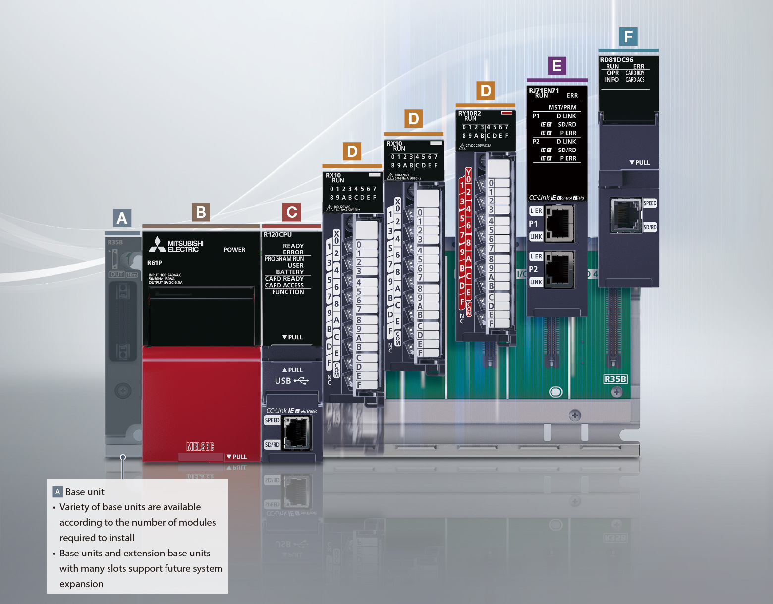 - Base units and extension base units with many slots support future system expansion