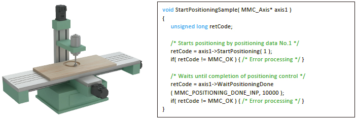 - Automatic operation can be executed easily by setting positioning addresses, speeds, and other setting items with the API library.