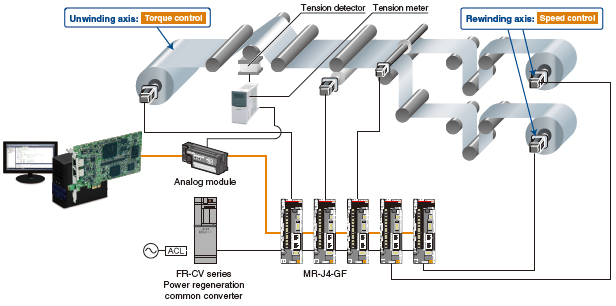 The Simple Motion board can be used for the speed-torque control, such as unwinding or rewinding.