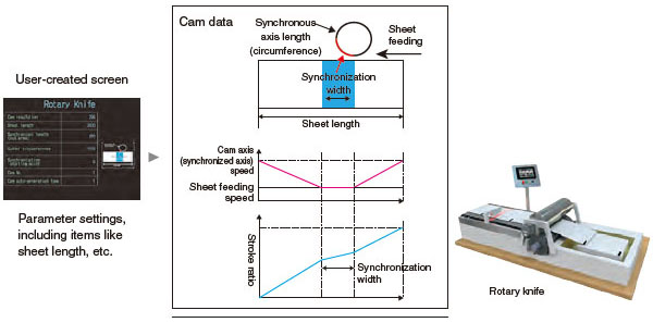 Cam data for a rotary cutter can be generated automatically simply by parameter settings of sheet length, synchronization width, cam resolution, etc.
