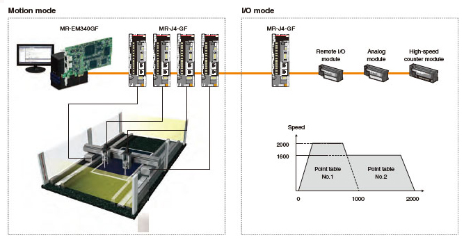 This mode enables advanced motion control functions, such as multi-axis positioning, synchronous control, and speed-torque control in combination with the Simple Motion board.