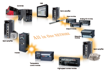 - Various field devices, such as servo amplifiers, I/O modules, and high-speed counter modules are connected flexibly with the same network.