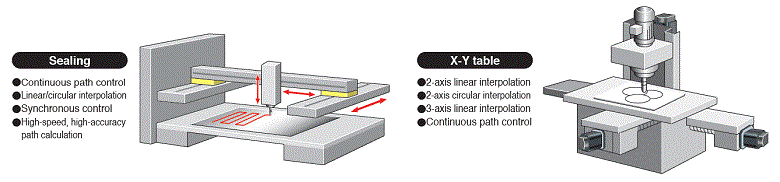 - To respond to various application needs, the Simple Motion module offers various control methods, such as linear interpolation, 2-axis circular interpolation, fixed-pitch feed, and continuous path control.