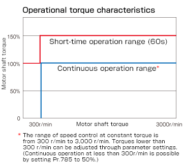 - Range of PM sensorless vector control 1:10 (300 - 3000r/min)
