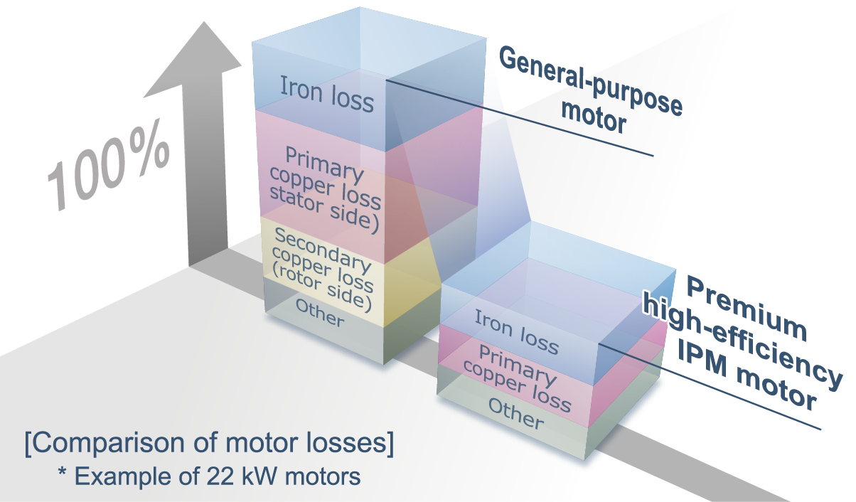Use of induction motors or PM motors contributes to energy saving.