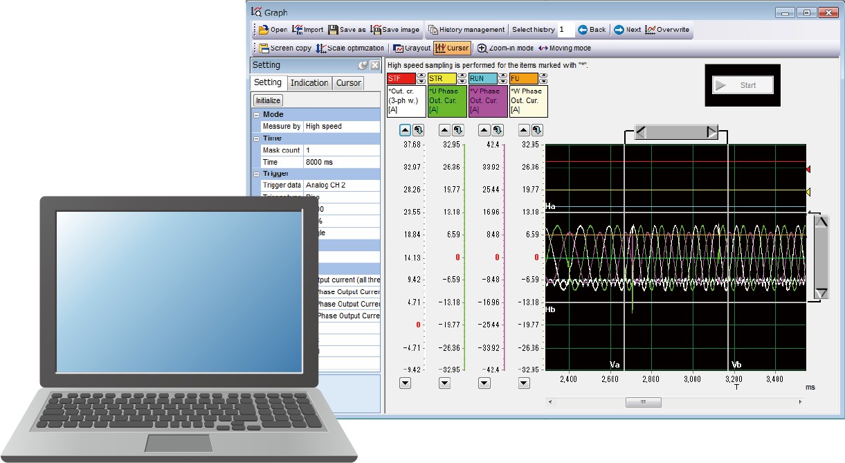 Waveform graph data immediately before the protective function is activated can be automatically obtained.