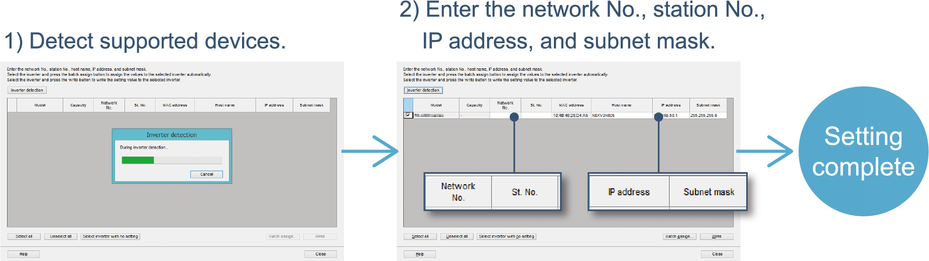Inverters in the same subnet mask are automatically detected, supporting easy network setting.