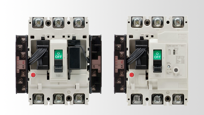 These accessories are installed inside the breaker. AX indicates electrically the status of the breaker. AL indicates electrically the status of the breaker trip. SHT makes the breaker trip electrically by remote operation. UVT releases the breaker when the control voltage is dropped.