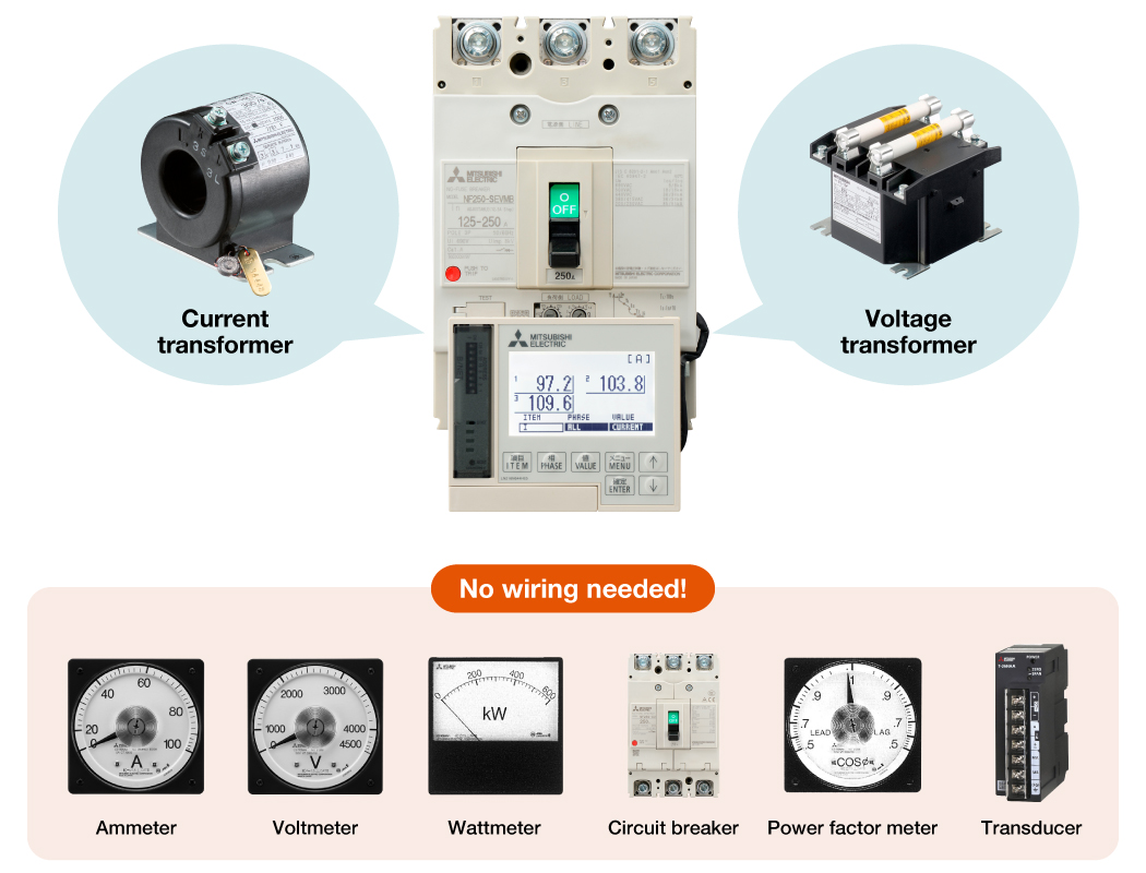 Wiring for independently installed circuit breakers and measurement devices is eliminated, allowing for smaller distribution panels, shorter construction periods, and reduced construction costs.