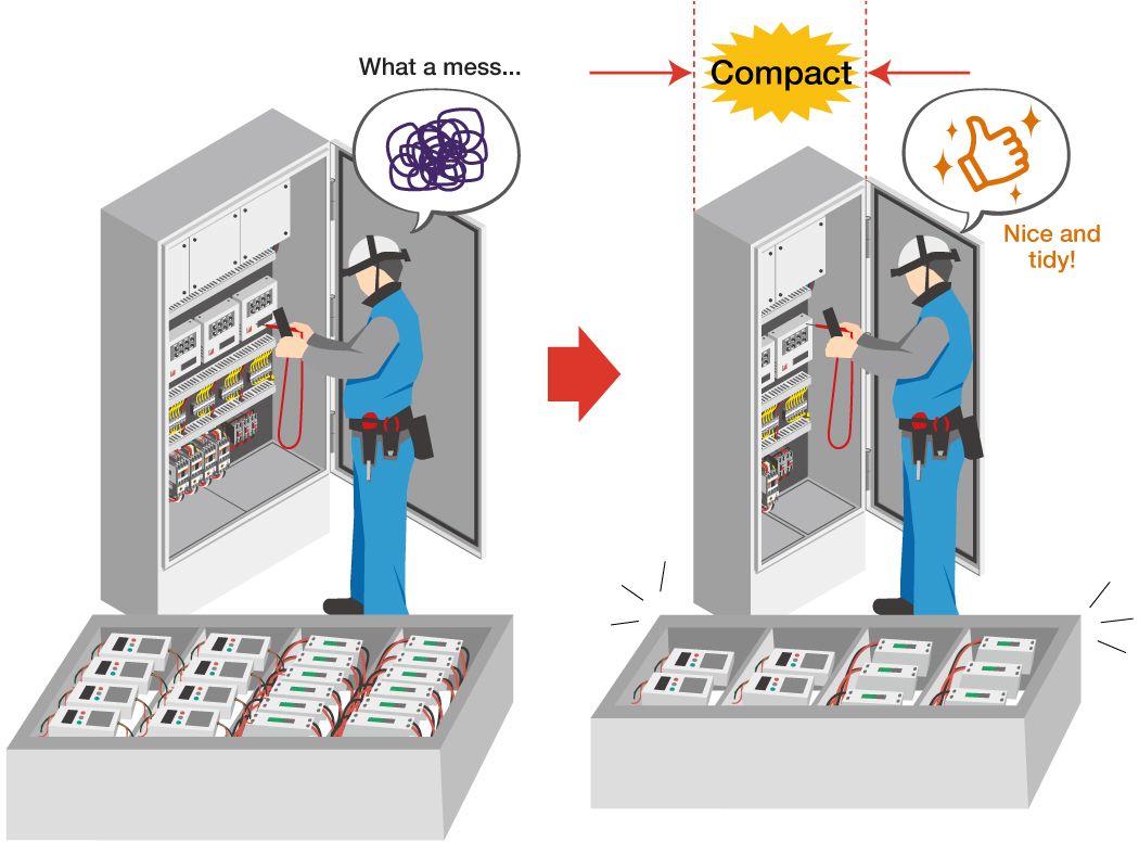 Clean and compact wiring helps simplify work!