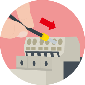 Spring clamp terminals stay connected using spring pressure to press a wire directly against the conductive section. Single wire and ferrule terminals can be connected simply by plugging them in. Even stranded wires can be connected simply by opening the spring with a tool, inserting the wire, and removing the tool.
