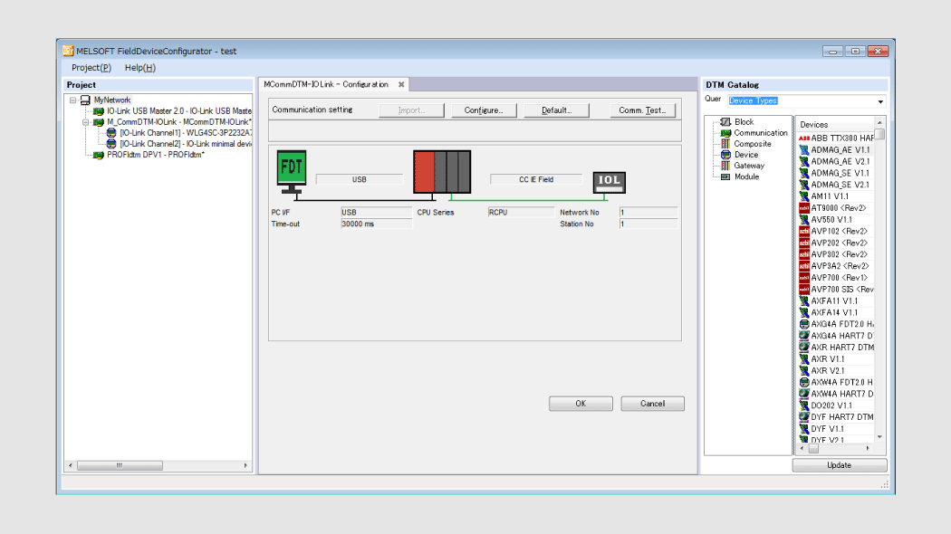 The MELSOFT FieldDeviceConfigurator software complies with the FDT/DTM open standards, so it can be incorporated in the Mitsubishi DTM as well as multi-network DTMs offered by other vendors.