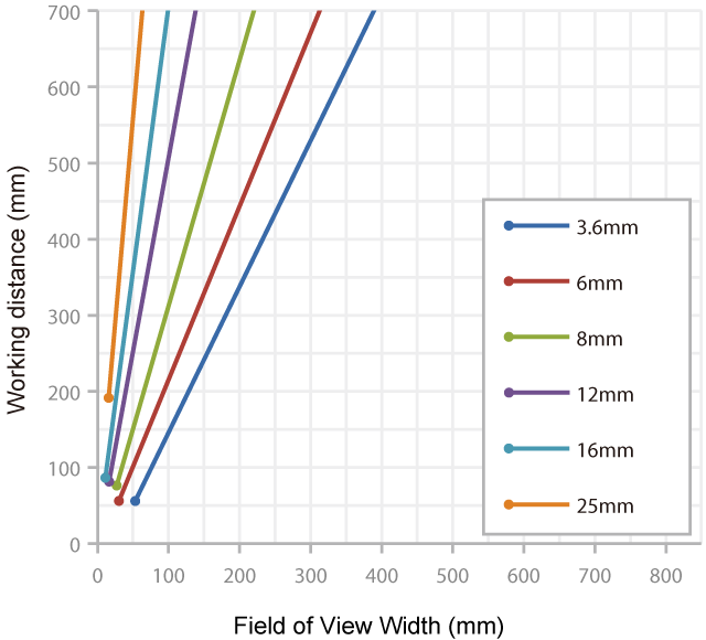 The distance from a lens to an inspection target is referred to as "working distance", and an area where a vision sensor can see at that distance is referred to as "field of view".