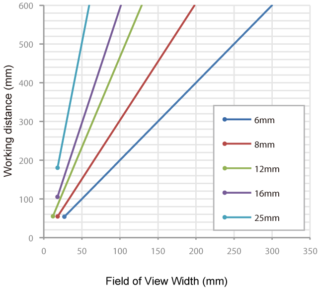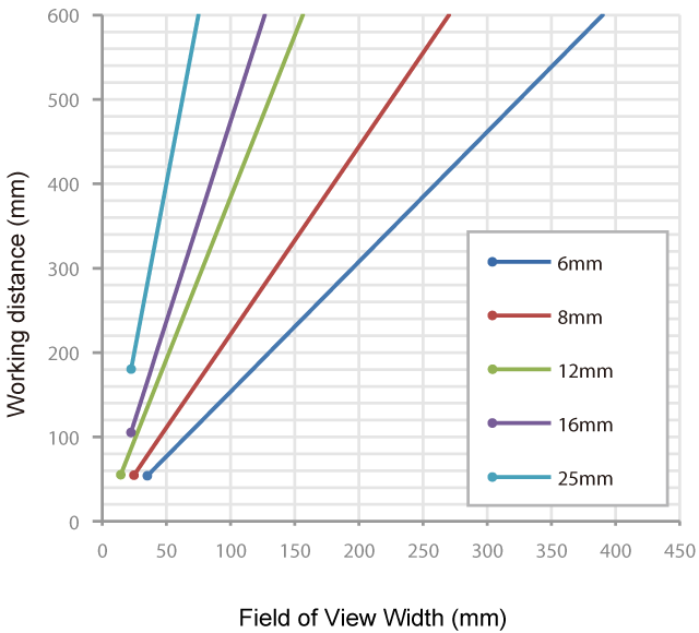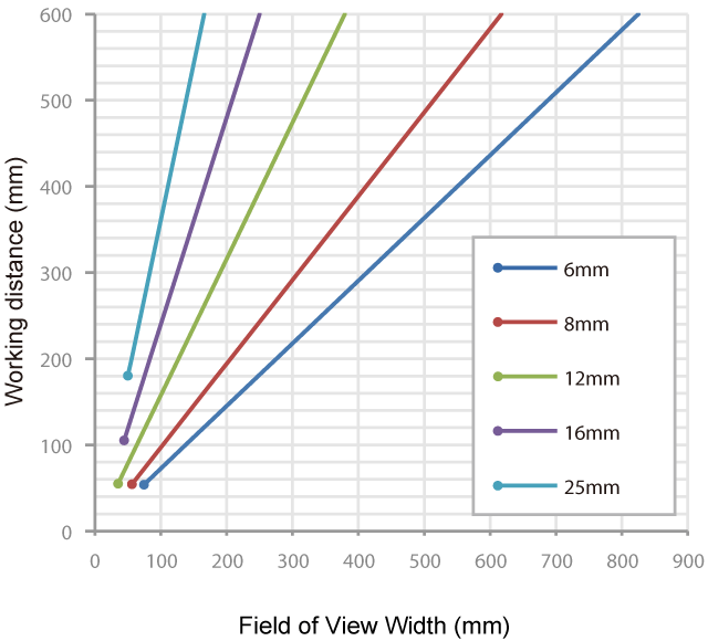 The distance from a lens to an inspection target is referred to as "working distance", and an area where a vision sensor can see at that distance is referred to as "field of view".