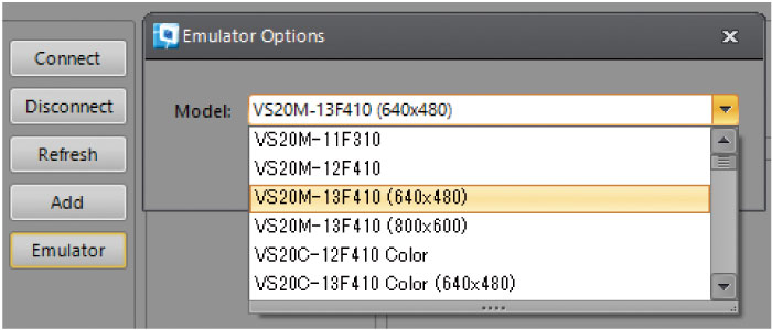 Even if a vision sensor is not connected, selecting a vision sensor from the list enables operation check and job creation. If the image of inspection target is available, operation check or job change can be done on the spot.