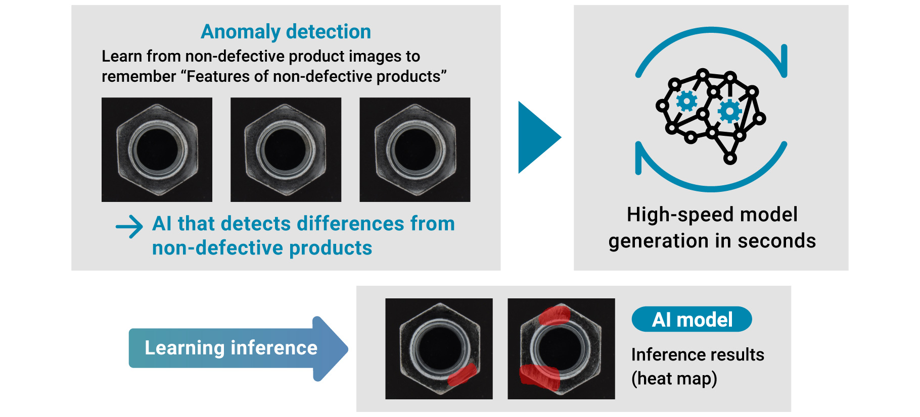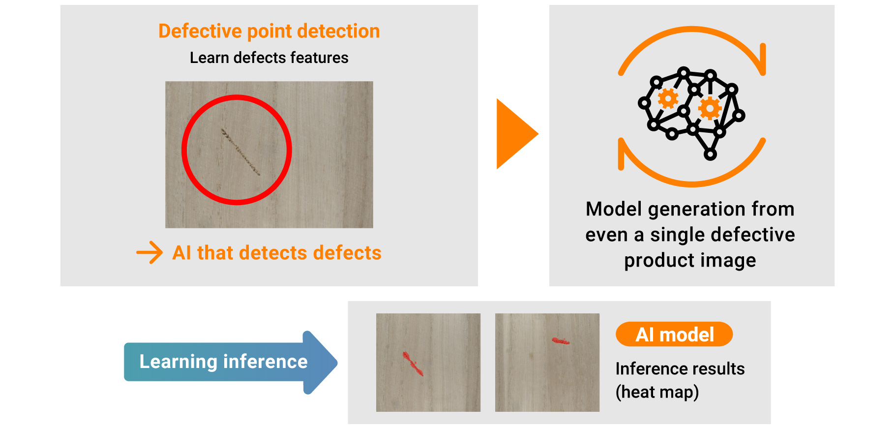 The limited number of defective product images complicates accuracy improvement. Generating AI models requires extensive image learning, making the process time consuming and inefficient.