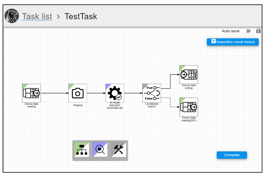 Easily set up tasks in a flowchart format. Settings from model generation to monitor screen creation can be performed with a single tool.