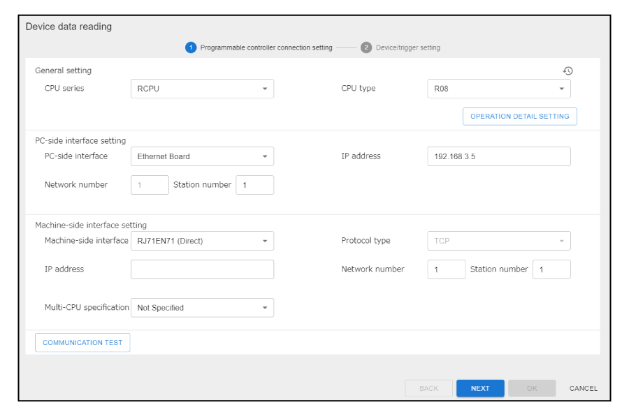 After creating an inspection task flow, simply select the data to save. Various programmable controller data such as manufacturing information, inspection results, and captured images can be automatically saved when the task is executed.