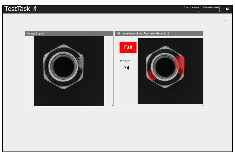 All functions necessary to construct an AI visual inspection system can be easily set up without programming.
