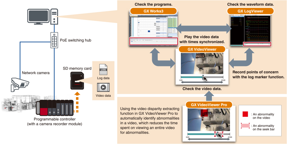 Record all operation data and video data of machines and devices so conditions at the time of the error can be recreated, allowing users to identify the root of the problem.