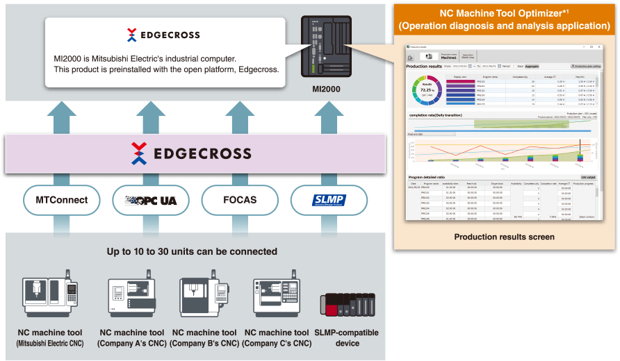 *1Depending on the edition of the NC Machine Tool Optimizer,the supported models, protocols, and maximum number of connections vary. For details, please refer to the product catalog.