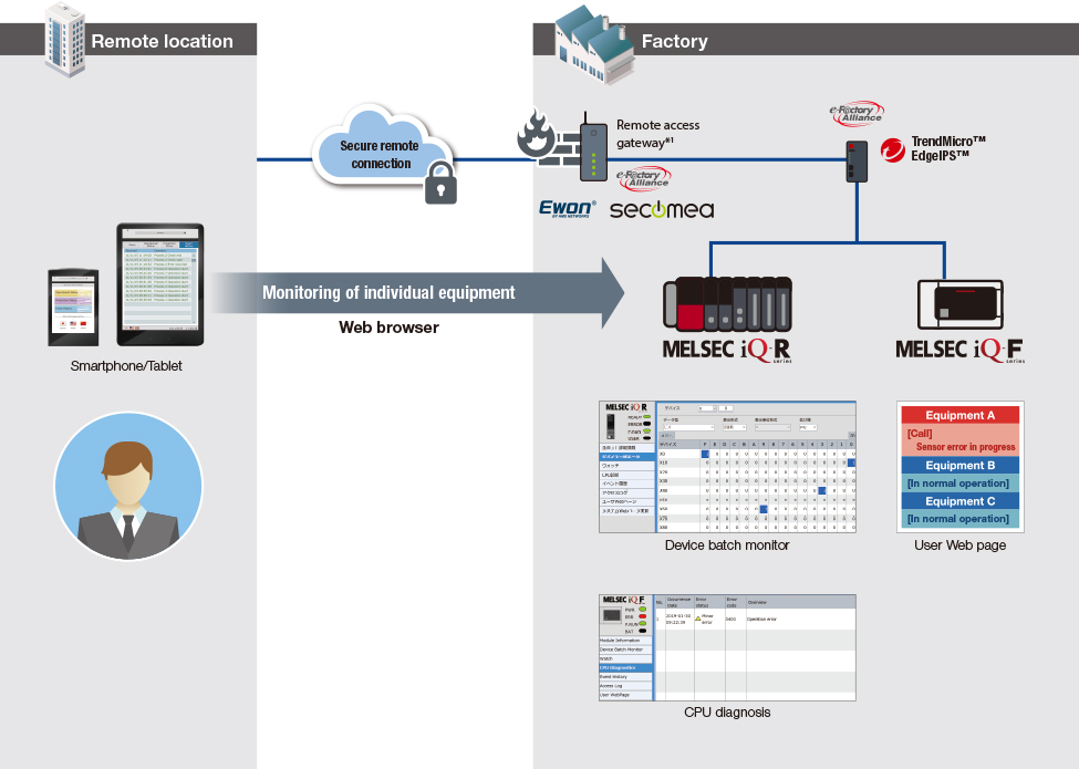 - Even without a special-purpose tool, users can view equipment status via a smartphone or tablet web browser, and then respond appropriately based on facts and data.