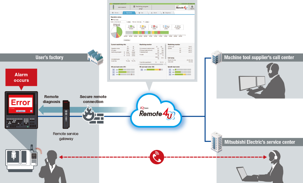 (1) Through the iQ Care Remote4U platform, added a remote service function to machines equipped with Mitsubishi Electric’s computerized numerical controllers (CNC).