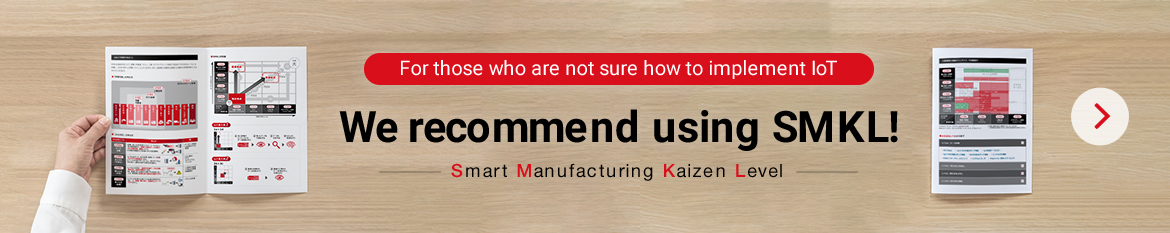 determine where the next investment should be made. Mitsubishi Electric sets the items to be managed (KPI) when implementing IoT in shop floors, utilizes the evaluation indicators "SMKL" for each KPI to understand the current progression of IoT, and sets the future goals.