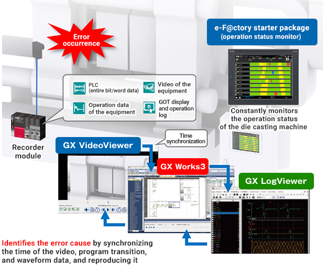 - The error cause is identified by synchronizing the time of the video, program transition, and waveform data, and reproducing it.
