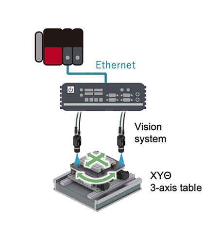 - Electrode position data detected by vision systems from various companies is read by the motion system via general-purpose Ethernet, enabling high-speed alignment correction to target position.