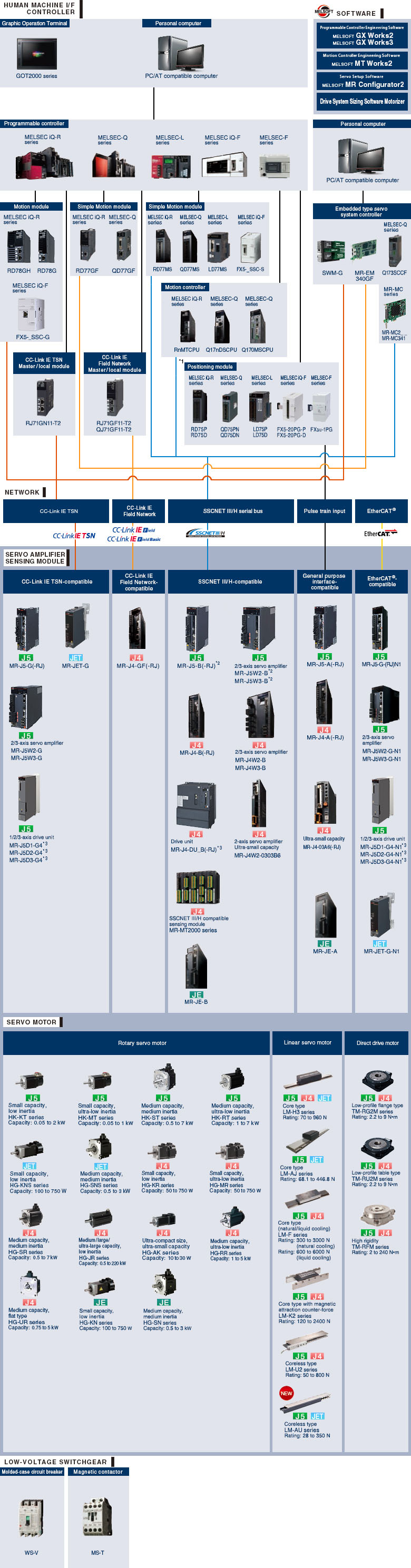 Going beyond servo amplifiers and servo motors, Mitsubishi Electric offers system level solutions that include programmable controllers, Motion controllers, and networks to satisfy a broad scope of needs.
