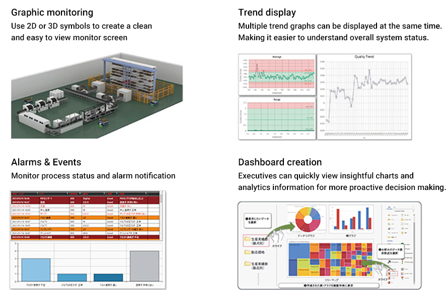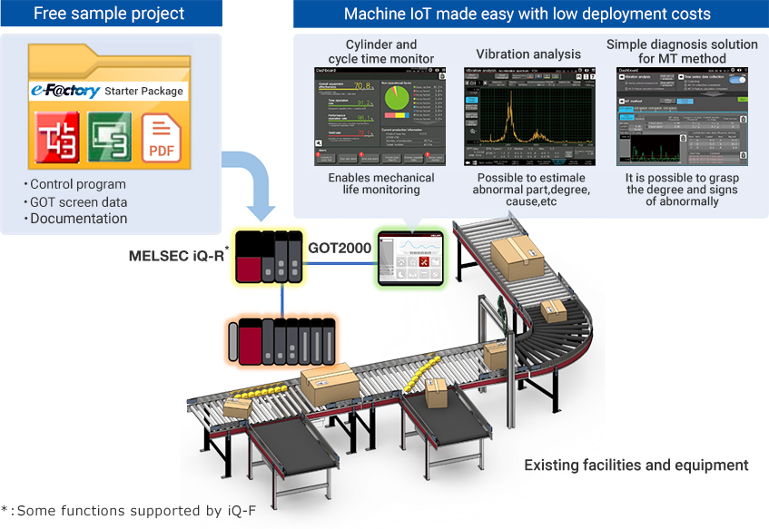 By utilizing the e-F@ctory Starter Package, it is possible to realize abnormality monitoring of various equipment and devices.