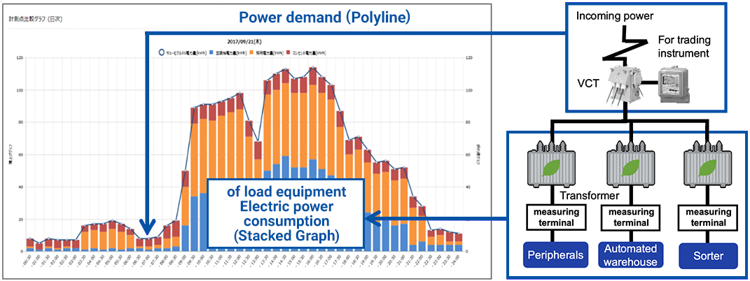 Based on the results of the analysis, we can review the operating equipment and perform rotational operation of the air conditioning equipment to achieve peak shifts and peak cuts to limit instantaneous power demand.