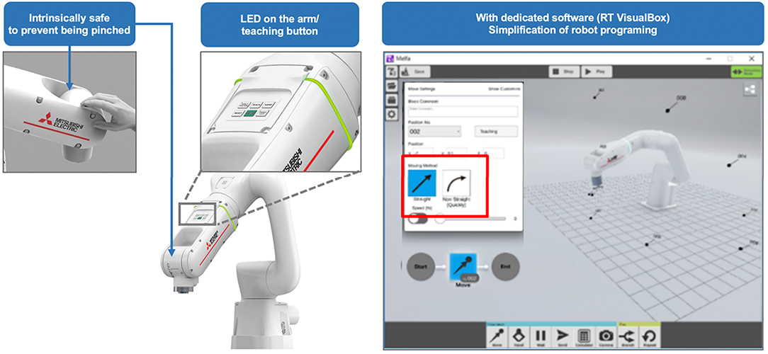 - Operation button mounted on arm instead of teaching box