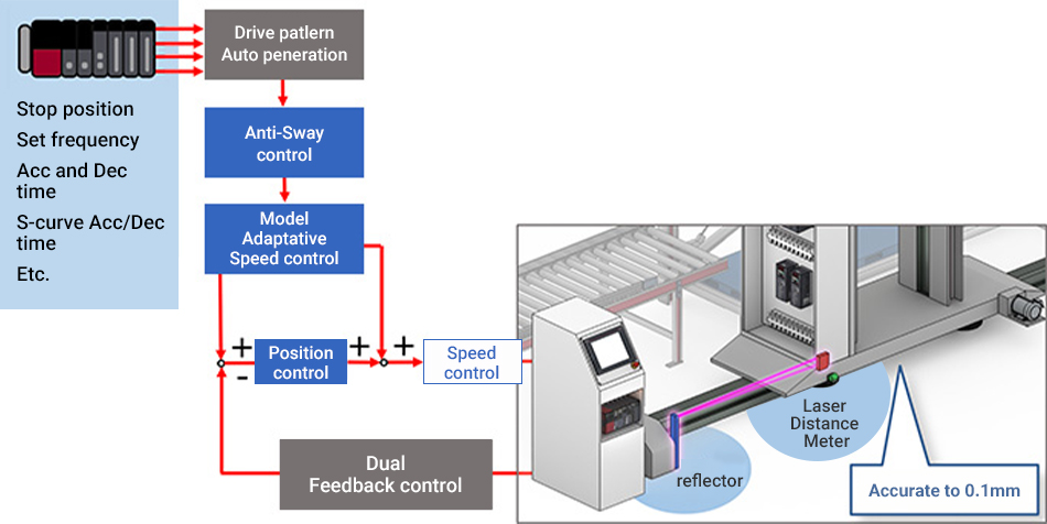 | Crane stability and high-speed operation | By vibration control, and position calibration functions faster and more stable load/unload |