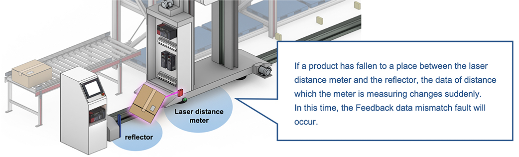 Equipped with various safety functions for stacker cranes in addition to standard inverter protection functions
